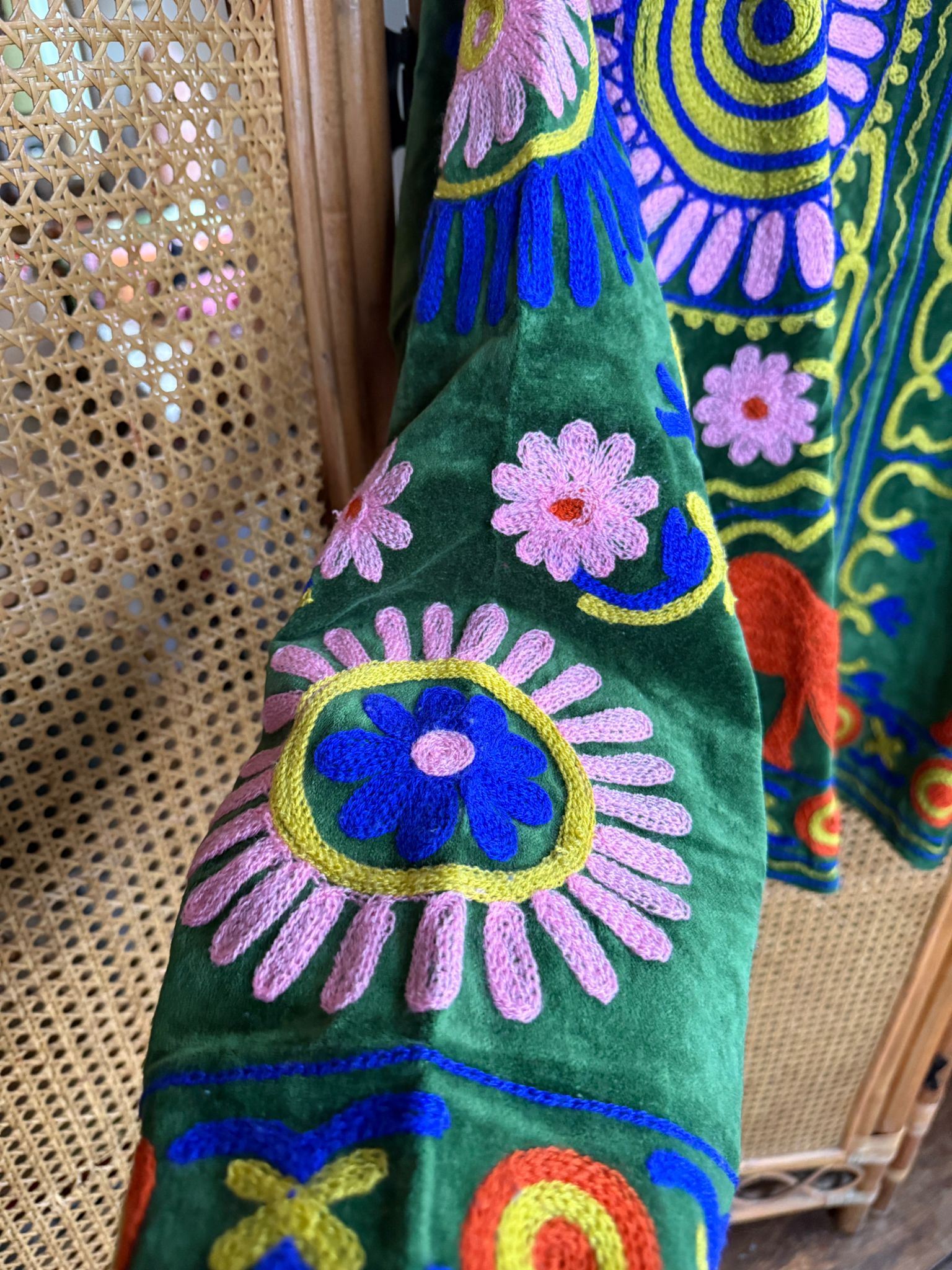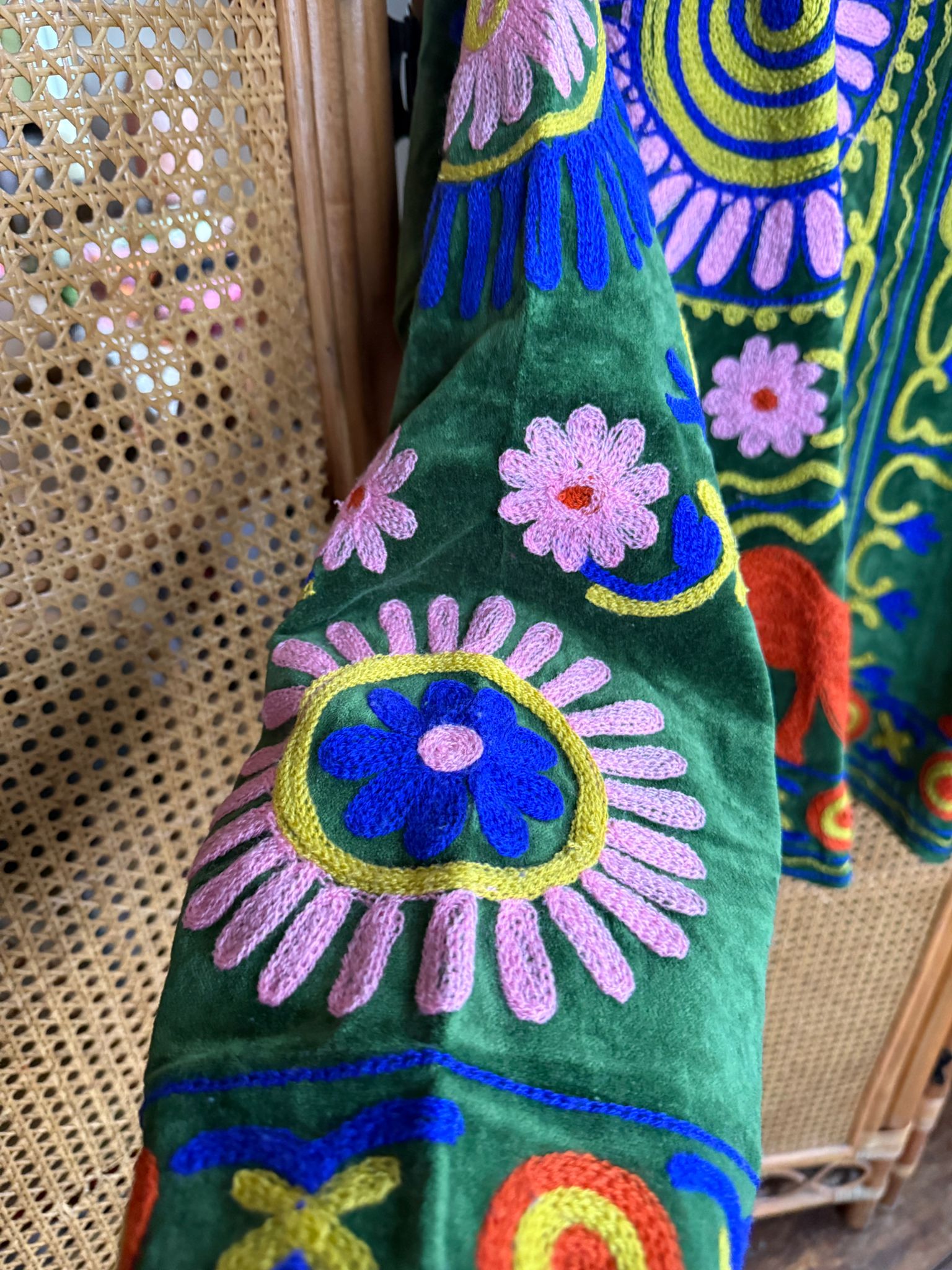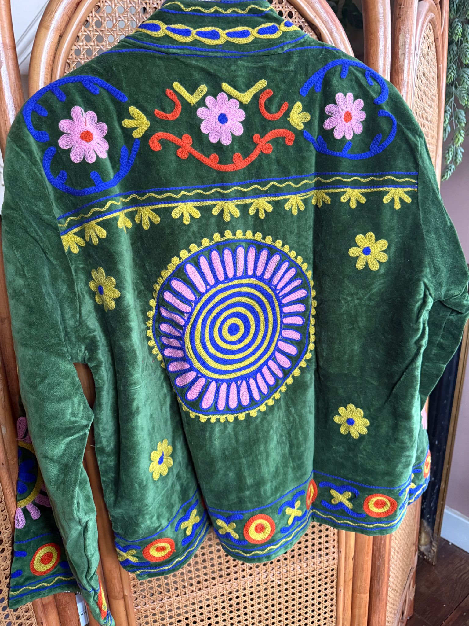 Every detail, from the soft sheen of the velvet to the intricately embroidered patterns radiates luxury and heritage. Whether you're dressing for a celebration or looking for a standout piece, this jacket adds sophistication to any look.