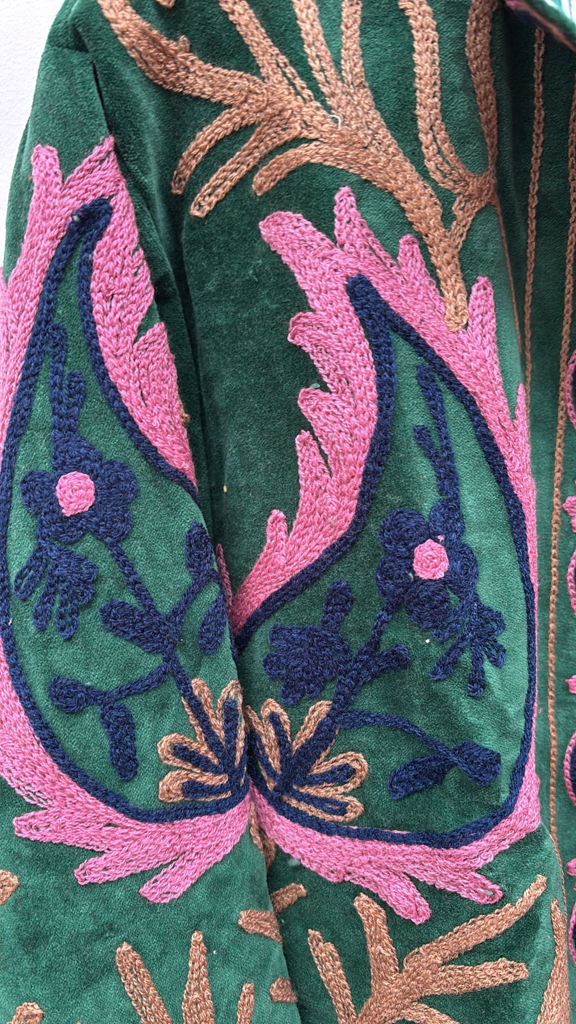 Every detail, from the soft sheen of the velvet to the intricately embroidered patterns radiates luxury and heritage. Whether you're dressing for a celebration or looking for a standout piece, this jacket adds sophistication to any look.